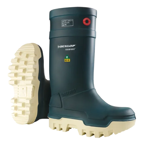 Bota fabricada en el material Purofort exclusivo de DUNLOP, 35% más ligera que las botas tradicionales, mantiene su flexibilidad y suavidad incluso a bajas temperaturas.